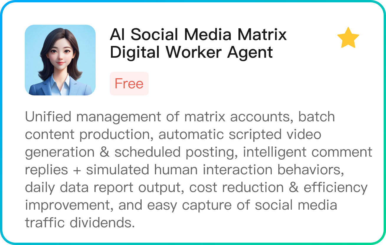 Multi-social media matrix management, batch video generation, scheduled posting, intelligent comments & human-like interactions
